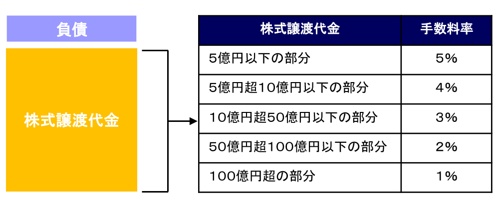 \ 手数料について 着手金は無料です。 基本合意契約締結時とクロージング時に手数料が発生いたします。 クロージング時の成功報酬は原則株式譲渡代金に対するレ―マン方式(下図ご参照)にて算出させて頂きますが、クライアント様のご事情に合わせ弾力的に対応いたします。